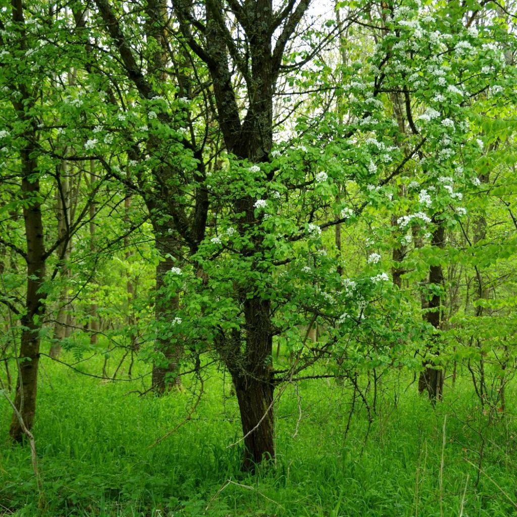 Mitten im Wald stehen immer wieder blühende Bäume.