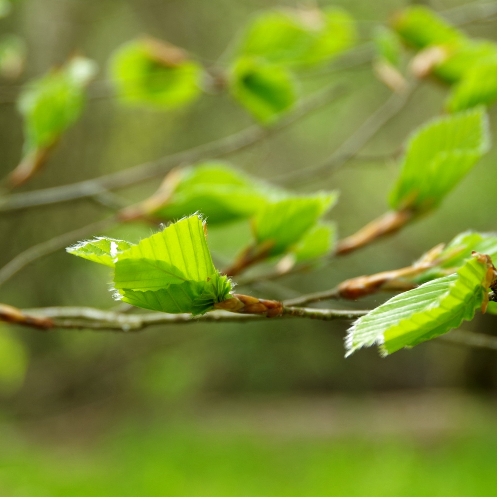 Leuchtend grüne Blätter an den gerade noch lichten Bäumen. Überall ist es nun MaiBuchenGrün.