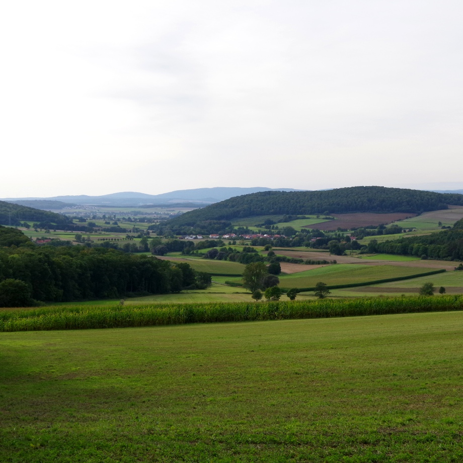 „Rinnetalblick 2,7 Km“, das war die letzte Entfernungsangabe, an der ich vorbeikam. Dann wird dies jetzt das angekündigte Rinnetal sein. Auch wenn ein konkreter Hinweis auf das erreichte Ziel fehlt. Insgesamt bin ich etwa eine Stunde und geschätzte fünf Kilometer unterwegs. Ich bin froh, dass ich nun nach dem mitgebrachten Käsebrot greifen kann. Eine Bank mit Blick über eine freundliche Landschaft.