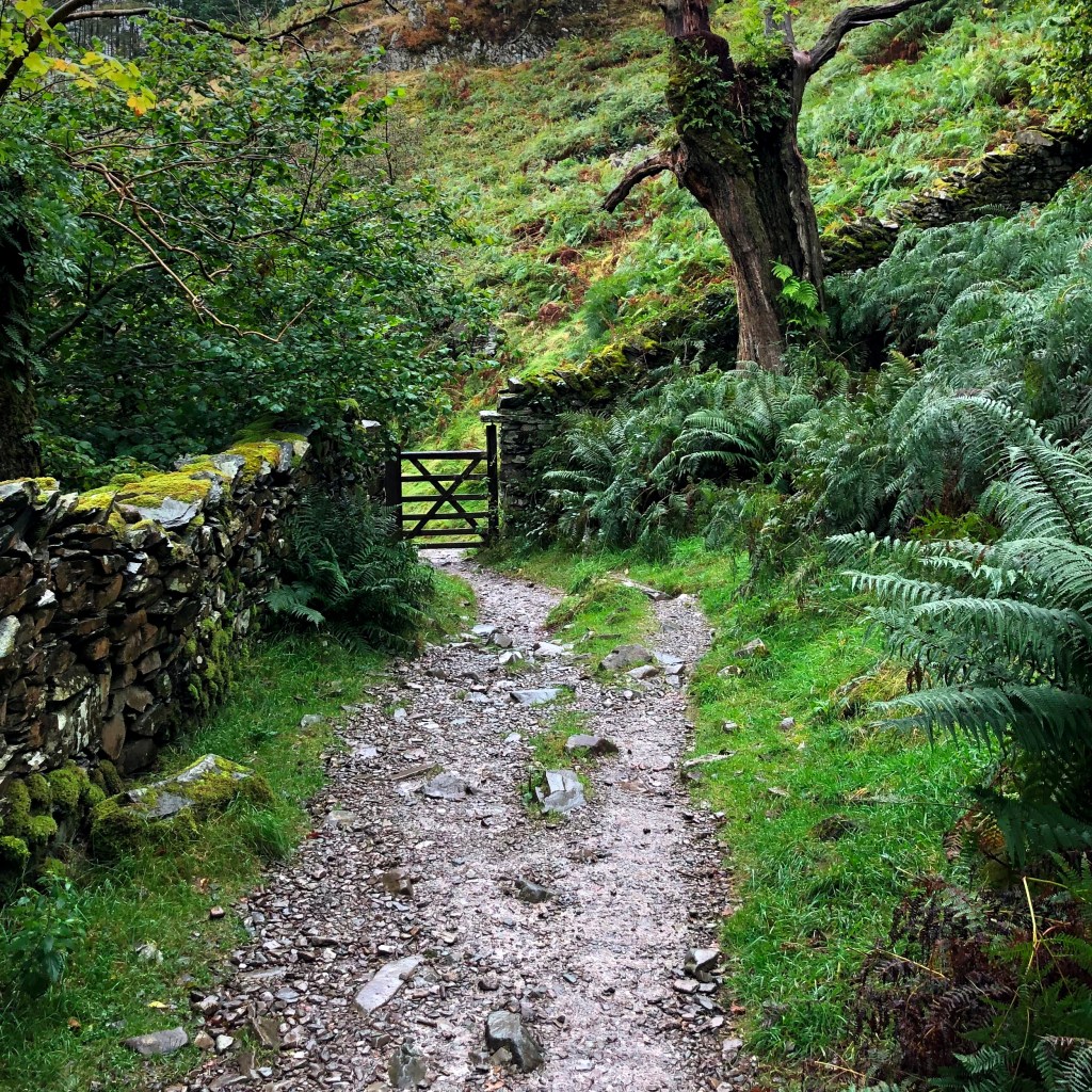 Die Coffin Route ist ein abwechslungsreicher Weg. Schöne Blicke über Rydal Water, endlose mit Moosen und kleinen Farnen bedeckte Natursteinmauern, alte Baumriesen. Alles ist hier viel ruhiger als gestern an der Rydal Cave. Ein paar Kilometer Entfernung machen viel aus. Selbst innerhalb dieser beliebten Wanderregion.