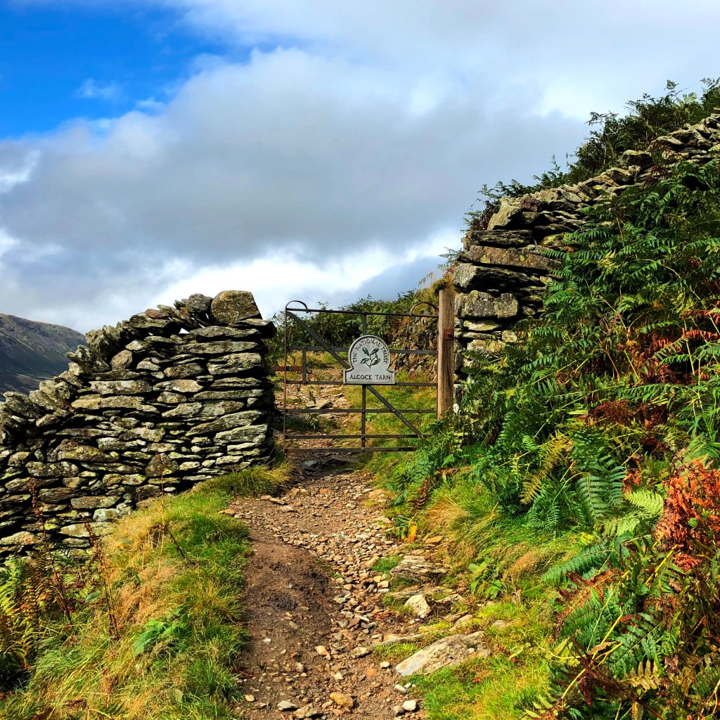 Als ich Grasmere schon fast erreicht habe, sehe ich einen Abzweig zum Alcock Tarn. Laut Wander-App ist es gerade einmal ein Umweg von 1,5 Meilen. Der Regen hat ganz aufgehört und ich meine mich zu erinnern, etwas über diesen Tarn gelesen zu haben. Ich habe keine anderen Pläne für heute und kann ebenso gut zum Alcock Tarn laufen. Leider habe ich keinen Tee und fast keine Verpflegung dabei. Aber selbst wenn es via Alcock Tarn 5 Meilen bis zur Hütte sind, wird es auch einmal ohne Vollverpflegung gehen.
